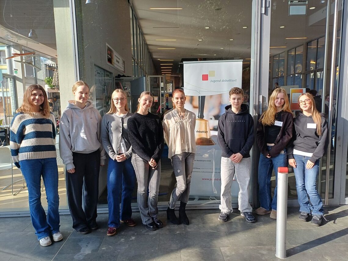 Erfolgreiche Debatten beim Regionalwettbewerb „Jugend debattiert“ in Marl Auch der diesjährige Regionalwettbewerb „Jugend debattiert“ in Marl war ein Tag voller spannender Diskussionen und intensiver Debatten. Unsere Schülerinnen und Schüler haben sich in den Wochen zuvor intensiv auf die Veranstaltung vorbereitet und traten in zwei Runden gegen starke Konkurrenz an. In der Altersgruppe 2 standen hitzige Themen auf der Agenda: Soll eine Kontaktgebühr für Praxisbesuche erhoben werden? Und soll die Veröffentlichung von Wahlumfragen im Vorfeld von Wahlen verboten werden? Gleichzeitig debattierten die Schülerinnen und Schüler der Altersgruppe 1 über die Fragen, ob eine insektenfreundliche Gestaltung von Privatgärten vorgeschrieben werden sollte und ob auf allen öffentlichen Plätzen im Regierungsbezirk Münster kostenloses WLAN…