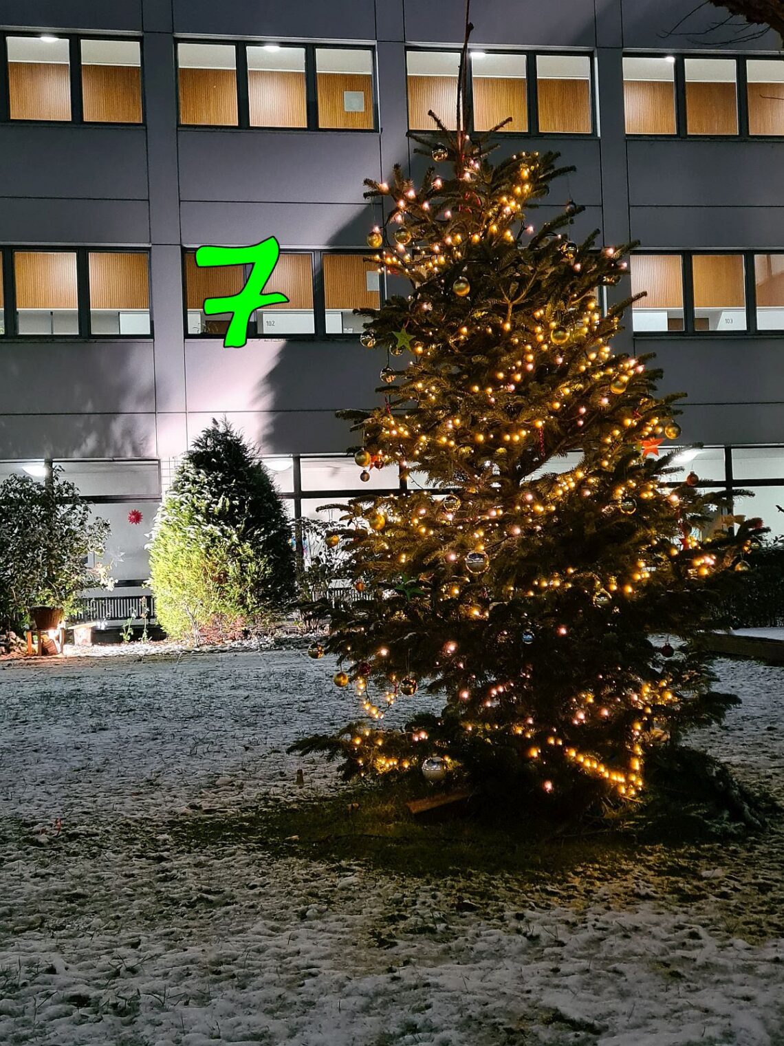 … wird in jedem Jahr unser Weihnachtsbaum. Wer stellt denn unseren Baum in der Vorweihnachtszeit auf? N der Fördervereinsvorsitzende, zZt. Herr Jankowski L unser Hausmeister Herr Hallmann R unser Schulleiter Herr Klein