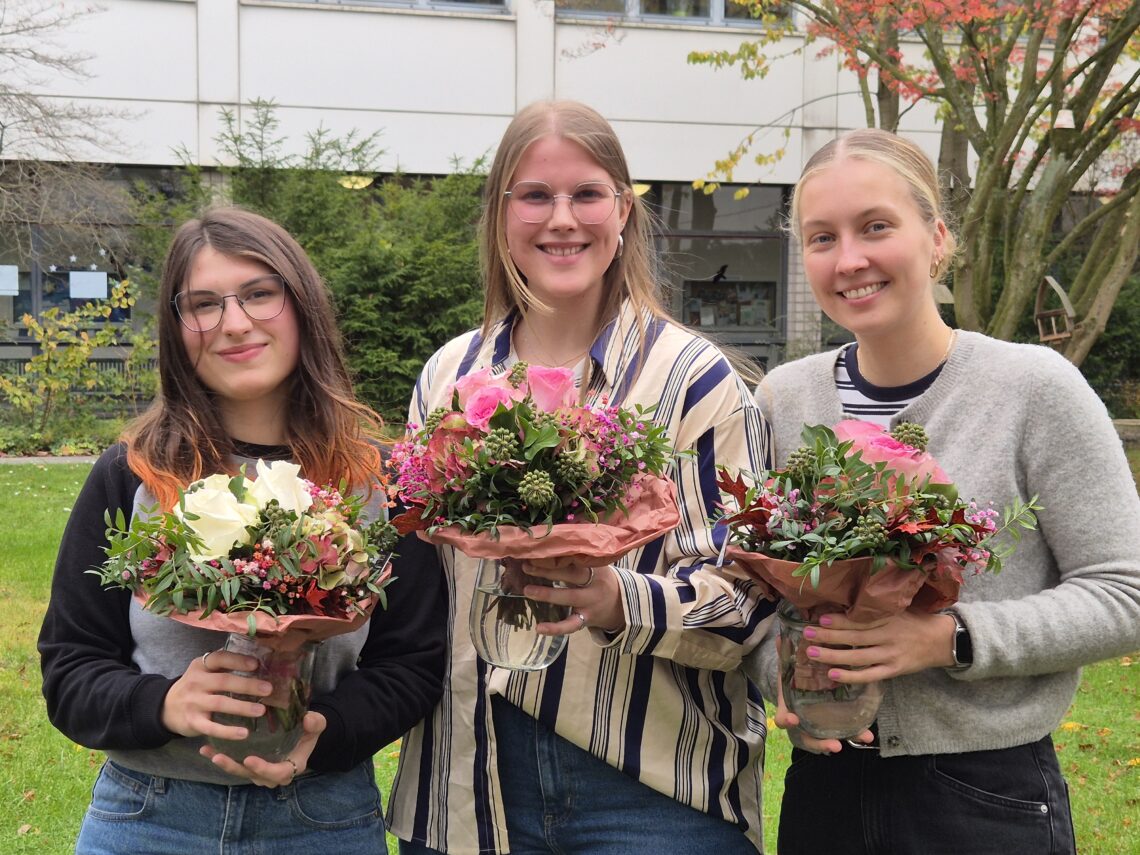 Referendarinnen verabschieden sich von der Schulgemeinschaft Mt vielen lieben Worten, Umarmungen und Blumen wurden unsere drei Referendarinnen Frau Große-Büning, Frau Schauf und Frau Werner verabschiedet. Alle drei haben ihre Ausbildung bei uns erfolgreich beendet und werden nun an anderen Schulen ihren Dienst als Lehrerin antreten. Auch Frau Helsper, die uns als Vertretungslehrerin unterstützt hat, wird an einer anderen Schule unterrichten. Wir sagen Ihnen allen herzlichen Dank für Ihren Einsatz bei uns und wünschen Ihnen für die Zukunft alles erdenklich Gute. Hoffentlich können Sie die Zeit, neue Wege zu gehen, auch ein bisschen genießen. Bleiben Sie dabei fröhlich, gut gelaunt und engagiert.