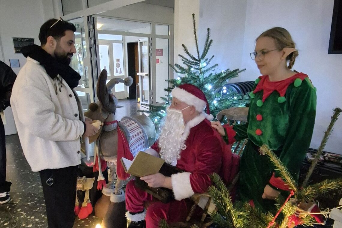Schulgemeinschaft erlebt adventliches Miteinander Überall im Gebäude funkelten die Lichter, die selbst gebastelten Sterne und der weihnachtliche Tischschmuck in der Cafeteria brachten die Gäste schon in adventliche Stimmung und Musik untermalte das Beisammensein. An unserem Adventsbasar wurden schon die ersten Geschenke gekauft, Deko für’s eigene Haus mitgenommen oder einfach gemütlich beisammen gesessen. Unsere Schule wurde zu einem Ort, an dem deutlich wurde, was uns allen in der Weihnachtszeit eine Freude bereitet. Sogar 15 Tannenbäume konnte man bei einer Tombola gewinnen. Der Weihnachtsmann (mit Rentier und Elfe) fand angemessene Worte für Alt und Jung. Und dazu erfüllen Bratwurst- und Waffelgeruch, Kuchenduft und Punsch-Aroma die Flure der Schule. Schön war’s! Wir bedanken…