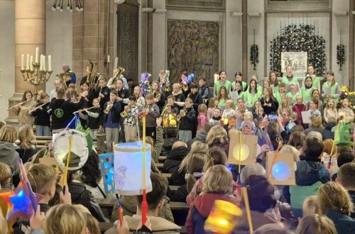 „Bleibt gelassen und lebt Individualität“ ist eine der Botschaften unseres Musical „Kokon der Hilaritas“, das nun zum letzten Mal aufgeführt wurde. Dafür hat unser Musiklehrer Herr Ziser noch einmal alle Akteurinnen und Akteure und das Orchester zu Proben gebeten und der Aufführung aus dem letzten Jahr erneut Leben eingehaucht. Und das hat sich gelohnt: Souverän waren unsere Schülerinnen und Schüler und erwirkten auf’s Neue Gänsehautmomente. Auch durch Herrn Düser und Herrn Schemberg als Ensemblegäste wurde das Bühnenstück zu einem Event der gesamten Schulgemeinschaft. Die Theaterpädagogin Frau Czermak führte im Nachgang durch das Publikumsgespräch, bei dem auch unsere junge Komponistin Julia Mahler immer wieder Auskunft über die Entstehung gab und Zusammenhalt und Wichtigkeit eines Miteinanders hervorhob. Die Zustimmung zu diesem Statement war offenkundig: viel Applaus an diesem ganz besonderen Ort.