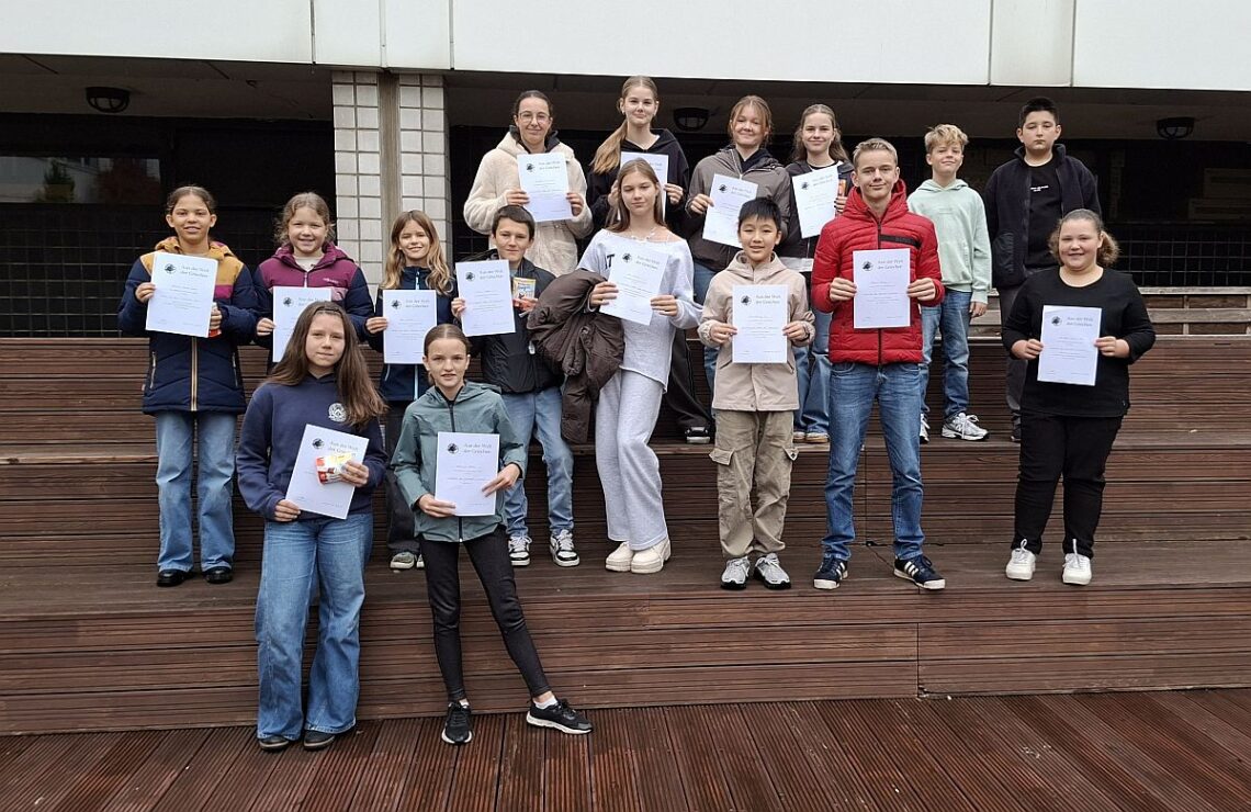 In einem Geschichtsprojekt tauchten Schülerinnen und Schüler der Jahrgangsstufen 6 bis 8 tief in die faszinierende Welt des antiken Griechenlands ein. Monatelang forschten alle dazu und brachten den anderen ihren Themenkomplex über äußerst kreative Zugänge näher. So wurden u.a Lapbooks (interaktive Minibücher) gestaltet oder kurze Videos zur Geschichte von Narziss und Echo gedreht. Auch unterschiedliche Brett- oder Kartenspiele wurden entwickelt, bei denen Spielende z.B. die Demokratie im antiken Griechenland verbreiten müssen. Am Schluss des Projekts zeigte sich, dass sich alle Gruppen auf eine spannende Spurensuche begeben hatten und regelrecht zu Historikern wurden. Dafür bekamen alle eine Urkunde und Preise für besonders kreative Produkte. Ein großes Dankeschön geht an Herrn Schütte, der nicht nur dieses Projekt begleitete, sondern auch die Teilnahme am Landeswettbewerb Geschichte unterstützte.